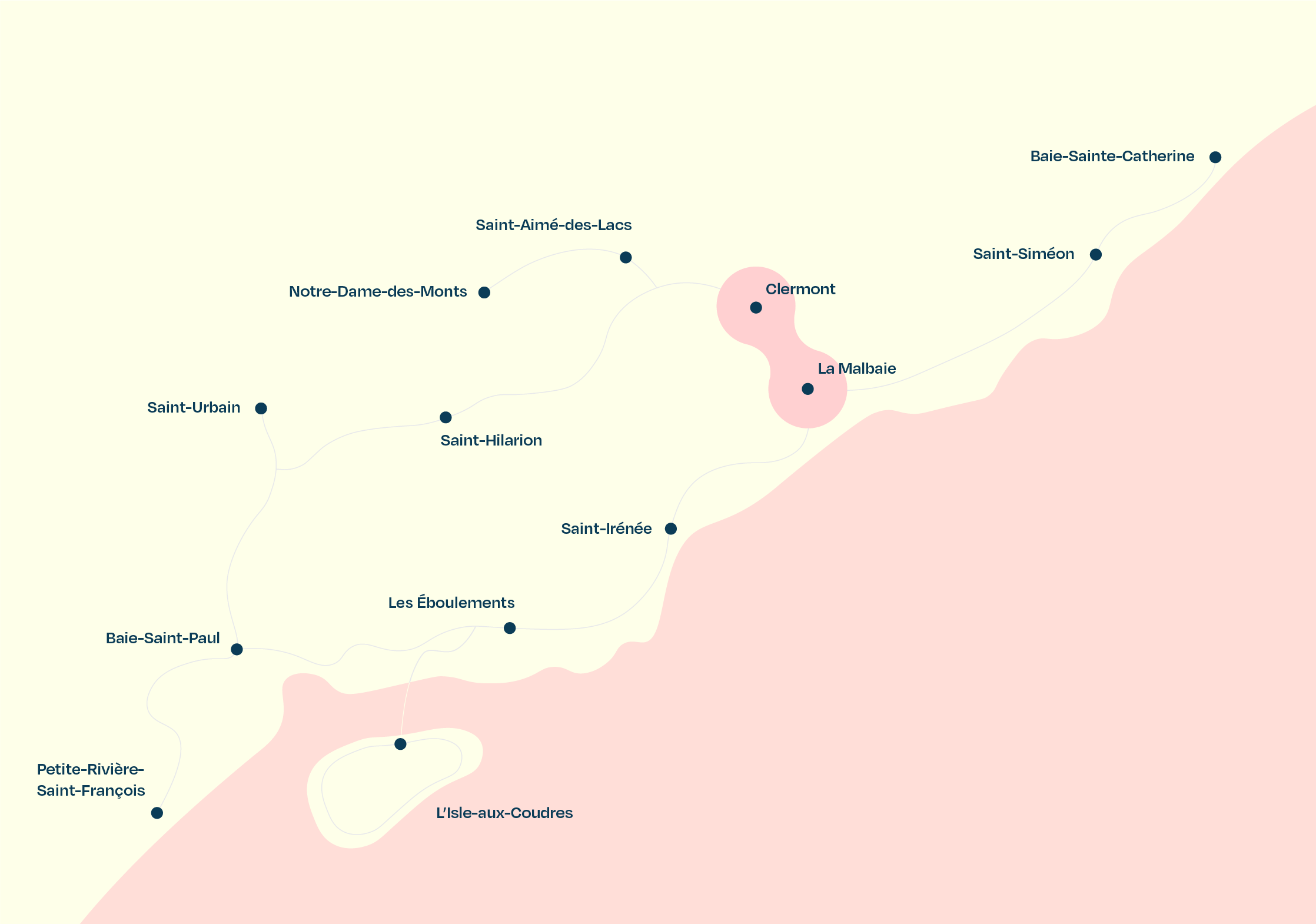 Ce transport collectif, c’est deux trajets pour vos déplacements quotidiens entre les villes de Clermont, de La Malbaie et de Baie-Saint-Paul.