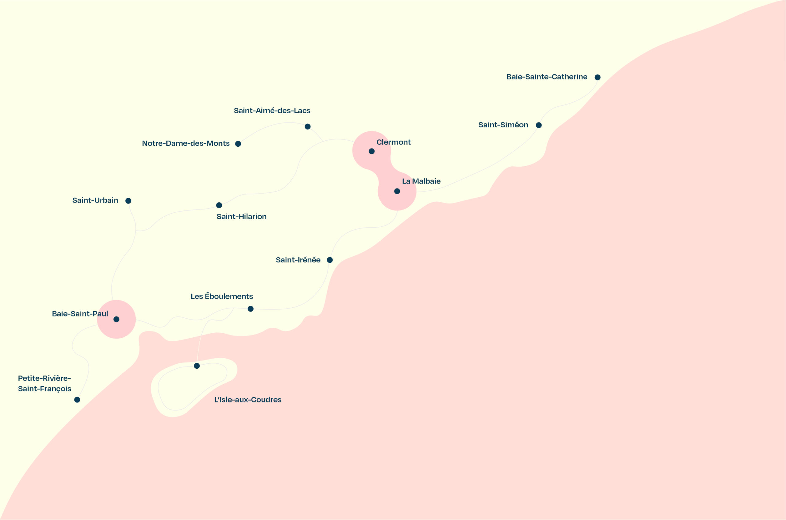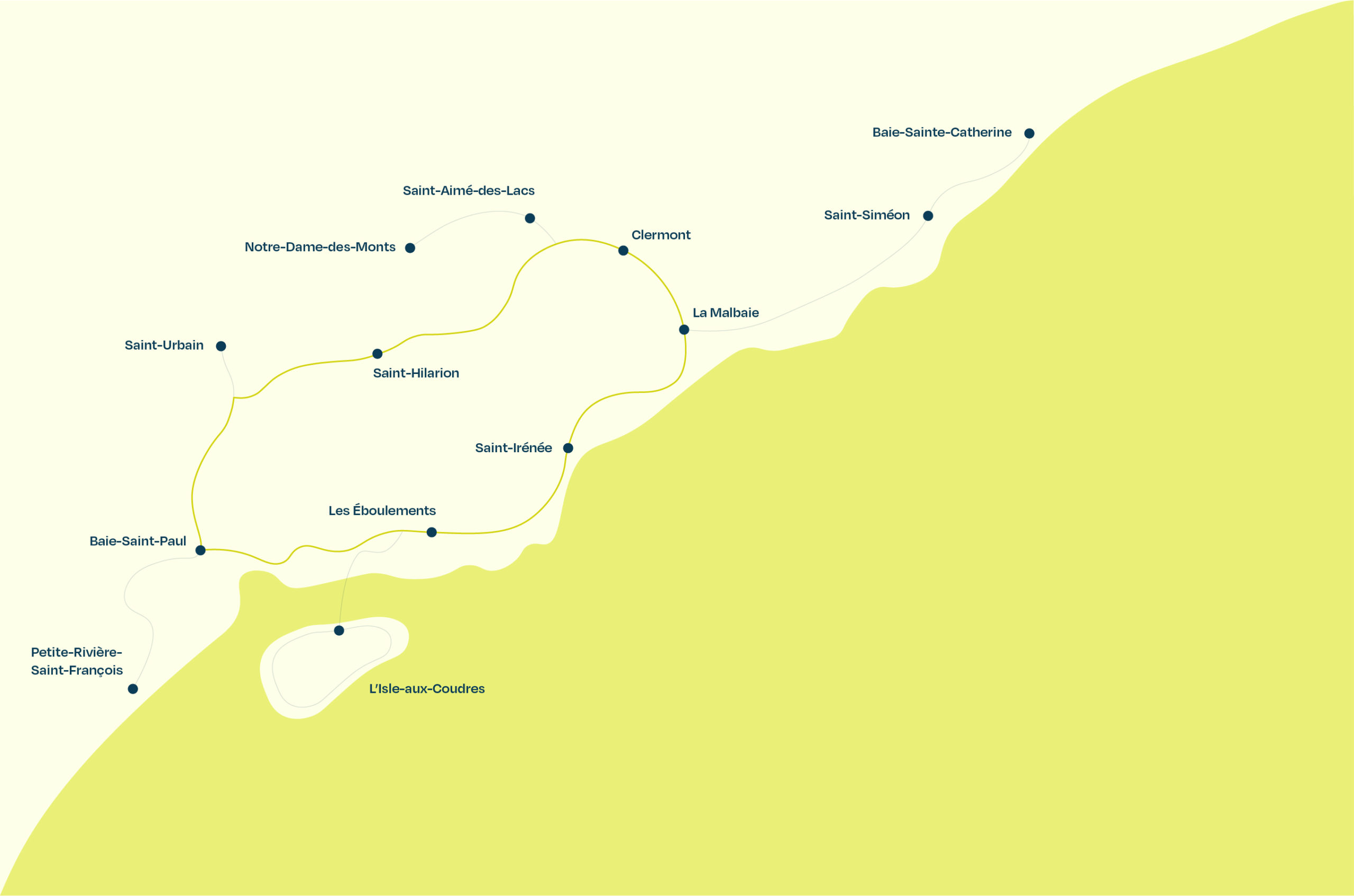 Le Circuit Taxi-Bus, c’est pour relier toutes les municipalités d’une MRC à sa ville-centre, soit Baie Saint-Paul et La Malbaie/Clermont.